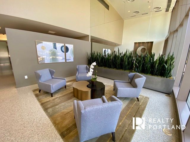 Encore is a terrific high-rise condo building located right on the edge of The Fields Park in the North Pearl neighborhood of Portland, OR. The Encore is a modern 16-story high-rise condominium on Overton between 9th and 10th in Portland's Pearl District. In addition to high-rise condos, Encore features townhomes with large outdoor spaces and direct access to the park. This is one of our favorite high-rise condo buildings in America, especially for dog owners. When you walk out the front door of the building you are literally steps from the popular Pearl District park, The Fields. You don't even have to cross a road - it's right there. And that's another unique characteristic of Encore... there is no street out front under your balcony which makes it one of the quieter condo buildings in the city. Building amenities include a fitness center, secure parking, bike storage and a resident lounge with a conference table.